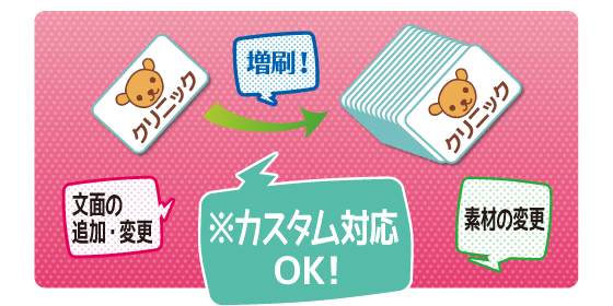 お手元のカードを活用して増刷したい場合、お問い合わせフォームまたはお電話でご連絡ください。